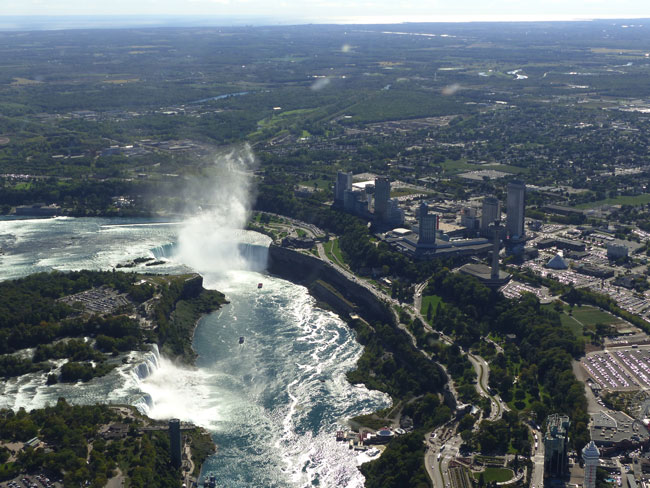 Als erstes verschaffte ich mir von oben einen Überblick und begab mich in einen aufregenden 10minütigen Hubschrauberflug. Die Zeit verging rasend schnell. Es war ein grandioser Ausblick auf die Niagarafälle. Erst später wurde mir das Ausmaß der boomenden Tourismusmaschinerie bewusst. Alle paar Minuten kreiste ein Helikopter über mir.