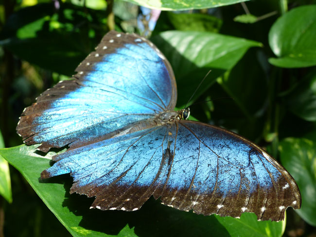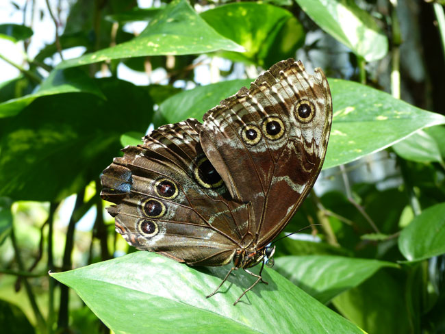 Im tropischen Paradies befinden sich tausende von bunten Schmetterlingen. Bis zu 45 verschiedene Arten flattern über die exotische Vegetation.