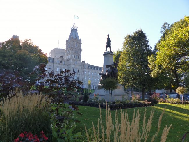 Weiter die Treppen aufwärts, spazierte ich an der Zitadelle vorbei, bis zum Plains of Abraham, wo sich 1759 die französischen und britischen Imperien bekämpften. Heute ist es ein großer Park, wo das berühmte jährliche Sommerfestival Le Festival d’Eté du Québec stattfindet. Dort traten schon die Rolling Stones, Red Hot Chili Peppers, Madonna und Lady Gaga auf. Wie an vielen Stellen der Stadt, wurde auch hier schon für Halloween dekoriert.