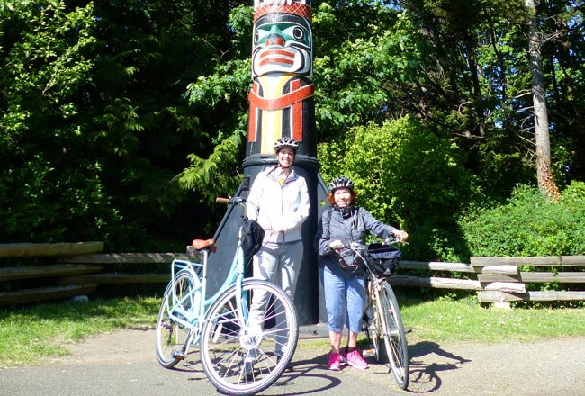 In unserer Kleingruppe freundete ich mich mit der sympathischen 65-jährigen Mary aus Orlando an. Die gemütliche Fahrradtour startete am Parlamentsgebäude. Am Hafen entlang ging es zum historischen Kern und wir machten einen Halt am Market Square. Weiter ging es nach Chinatown, zum Craigdarroch Castle und zuletzt fuhren zum Beacon Hill Park. Im Park machten wir einen Abstecher zum einst größten Totempfahl der Welt. Dieser wurde im Jahr 1956 mit einer Höhe von 38,9 Metern errichtet.